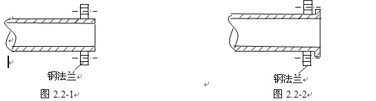 本工法与传统施工方法相比,在节约施工工期及成本上有比较明显的优势,如果采用传统的方法,管道必须保证精确测量,一旦有误即返厂进行修改,将浪费大量的人力和物力。2.2本工法与传统施工方法相比,在施工操作上更简便快捷,即可以在现场对制造的管道进行截短及修改:第一步,将细法兰套入聚乙烯直管段(如图2.2-1);第二步,将聚乙烯直管段端头挤压成型(如图2.2-2),大大提高了管道施工的灵活性。
